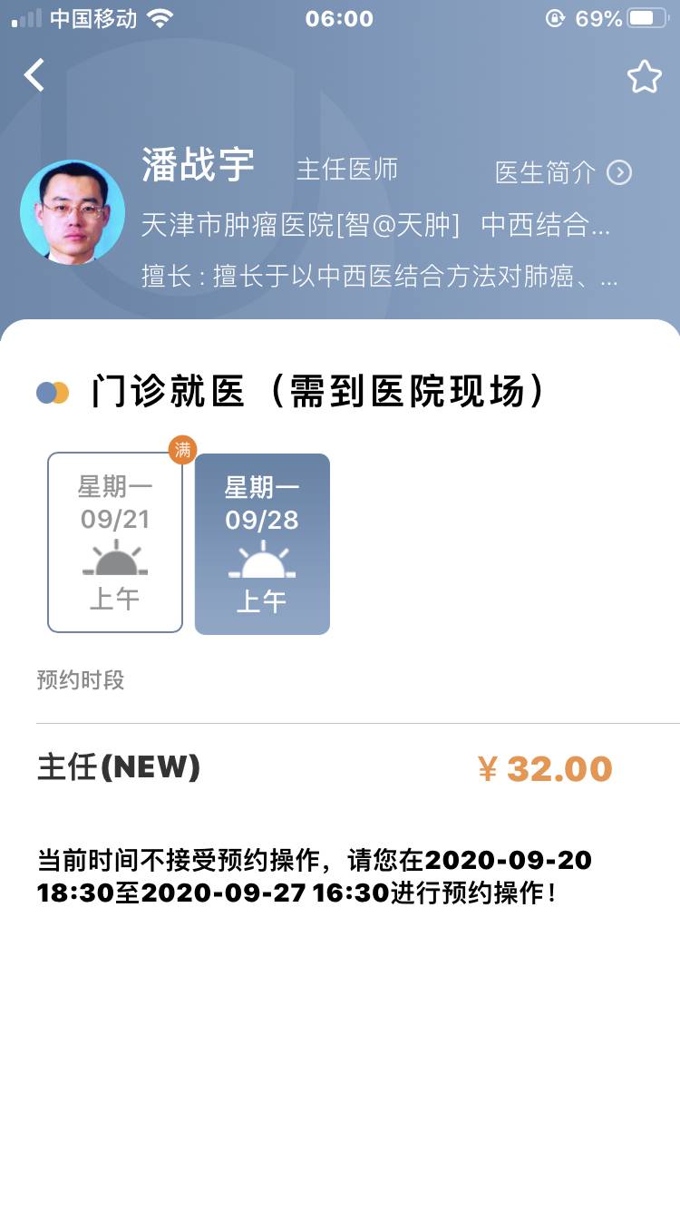 哪位亲知道天津肿瘤医院中西医结合科潘战宇主任的号怎么挂呀