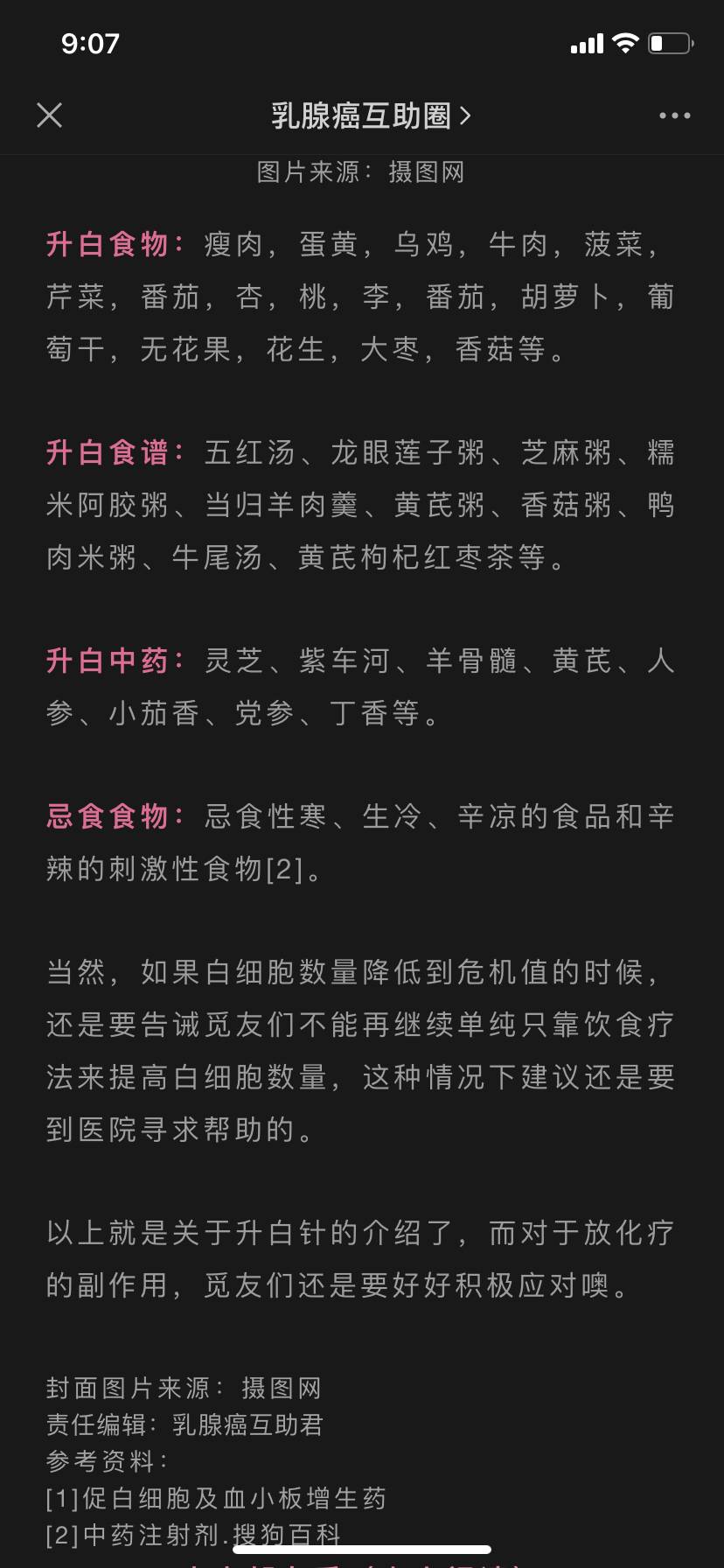 点赞(0) 举报牛尾汤效果不错,外加五红汤。我化疗六次,一次白细胞没降过。食疗比药疗安全很多。个人认为打升白针相当于拔苗助长。但实在太低不得不用哈
