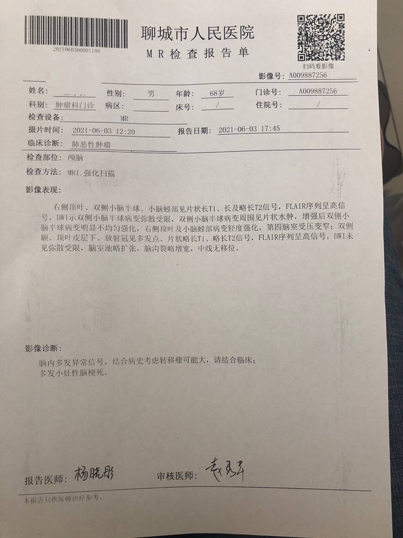 点赞(1) 举报得看具体的突变点位,20突变前插可以用奥西替尼,后插可以用阿法替尼。如果持续头疼建议去拍脑核磁看一下,是不是脑部有转移