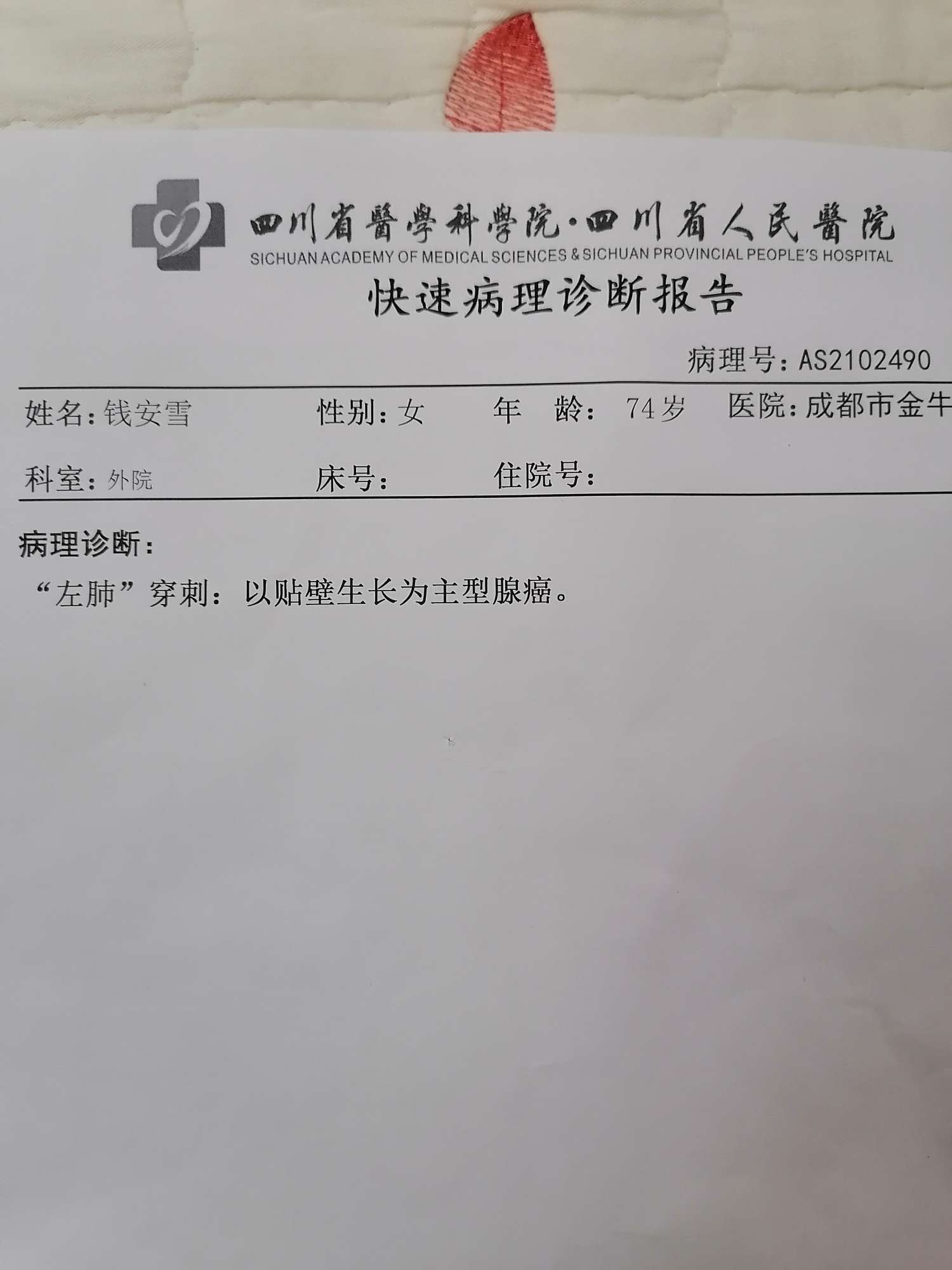 大家能帮我看一下这个病理诊断报告吗?
