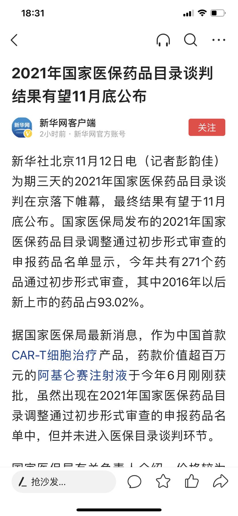 天大的好消息: 附:2021年国家医保药品目录调整 通过初步形式审查的申报药品名单 来拉替尼进入初审了,感恩!