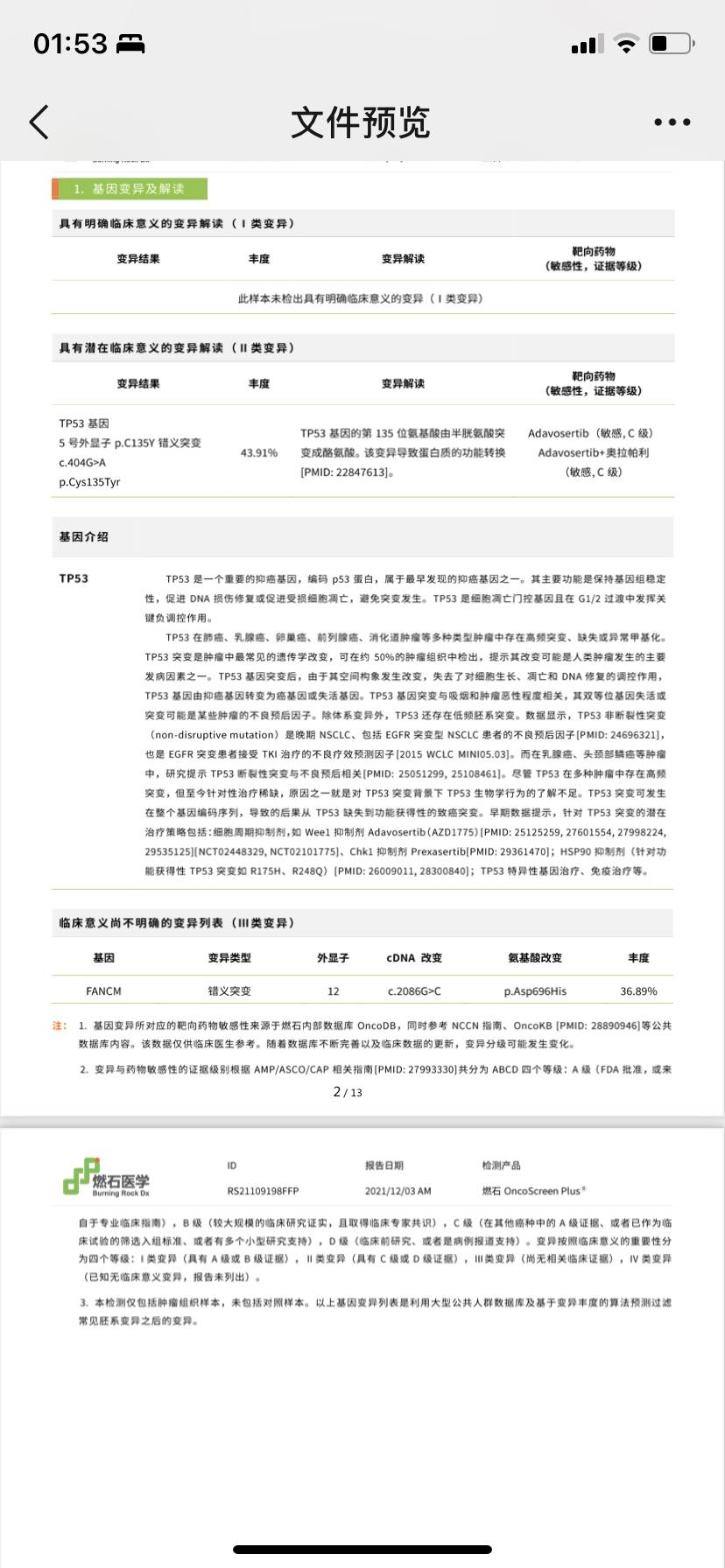 发一下基因检测报告截图。