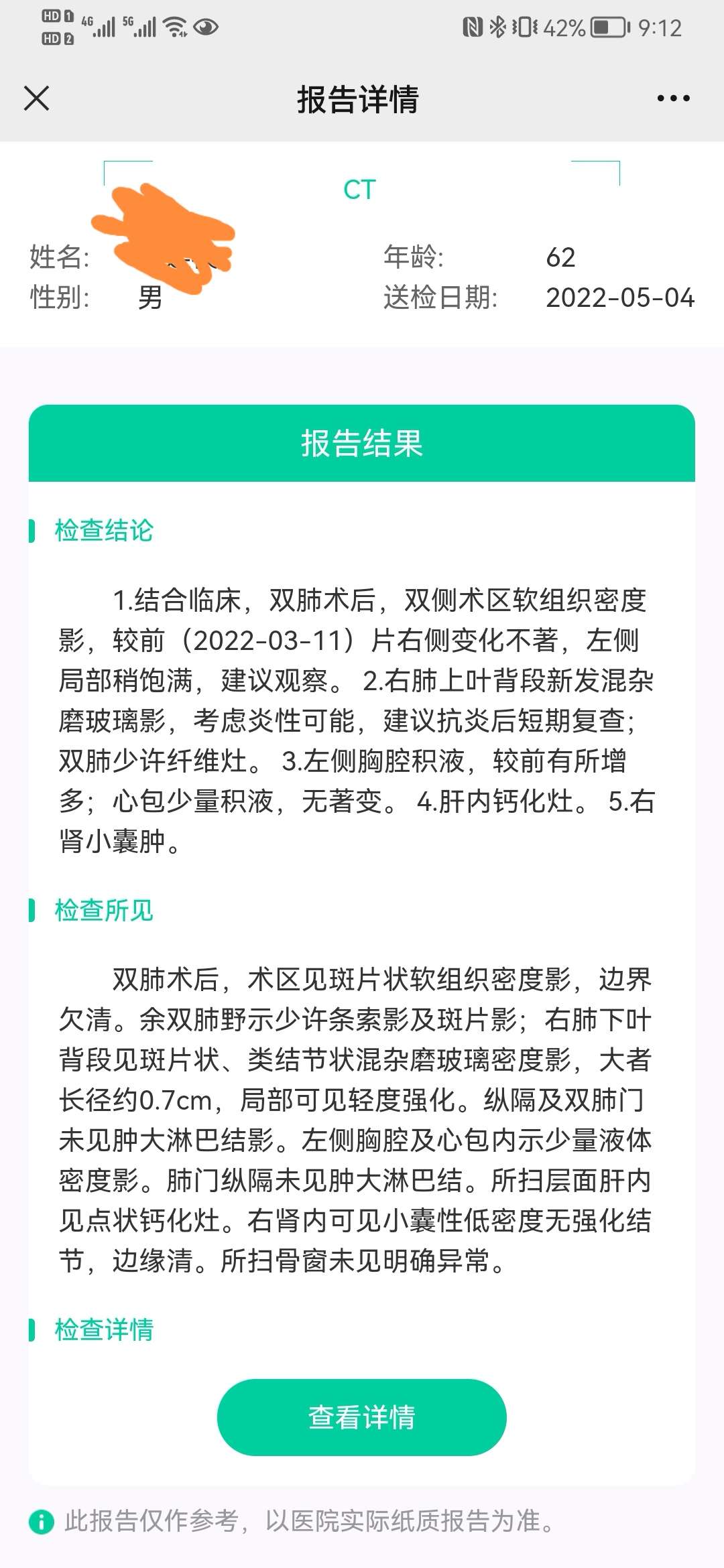 点赞(0) 举报胸液增多是不是有放射性肺炎啊,有炎症CA125也会高。角蛋白看是不是随治疗变化,不变化说明不敏感,不太高就不用理。