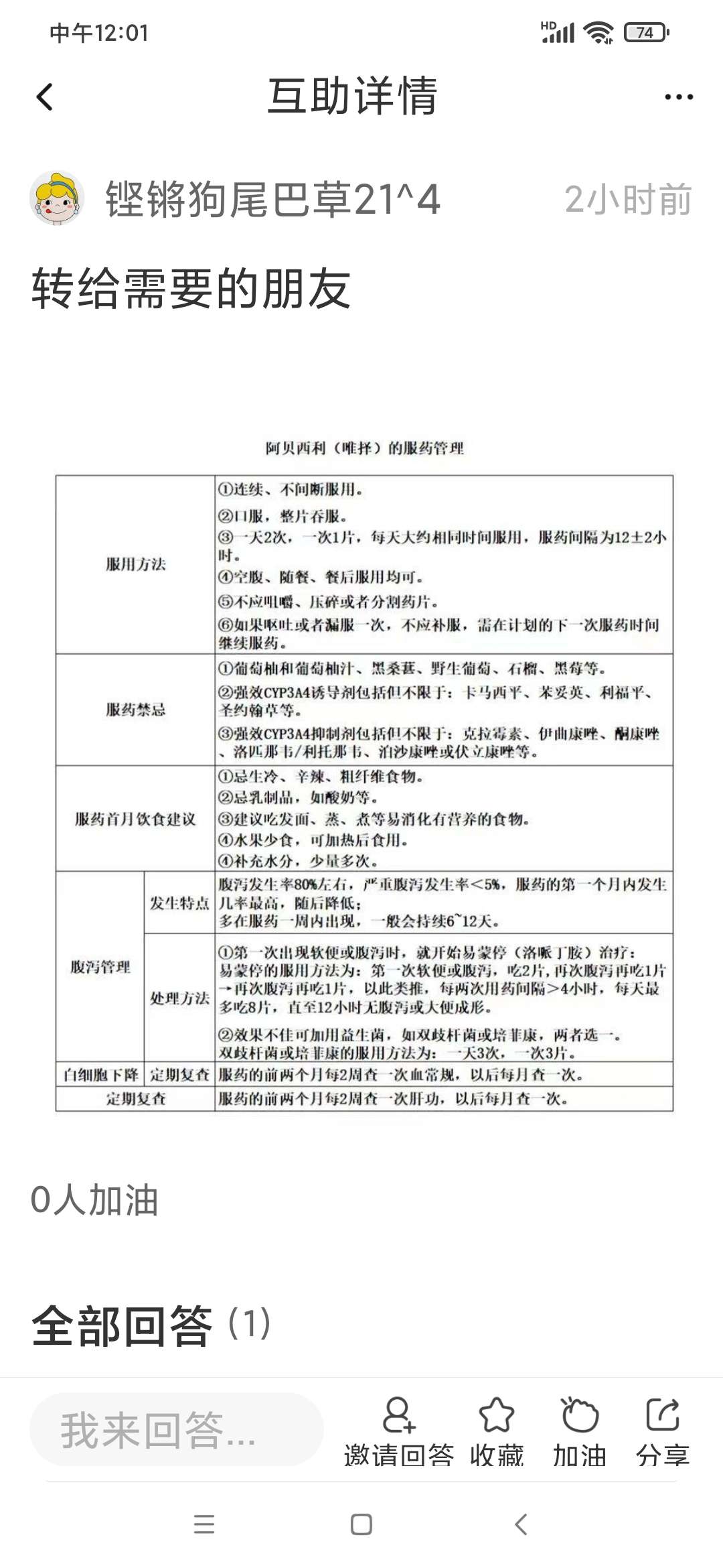 点赞(1) 举报刚才@铿锵狗尾巴草21^4,她发了一个关于阿贝西利的贴子,你去看看对你有没有帮助。在你发的贴子前面,好象笫十个就是,你找找吧,也在互助圈里