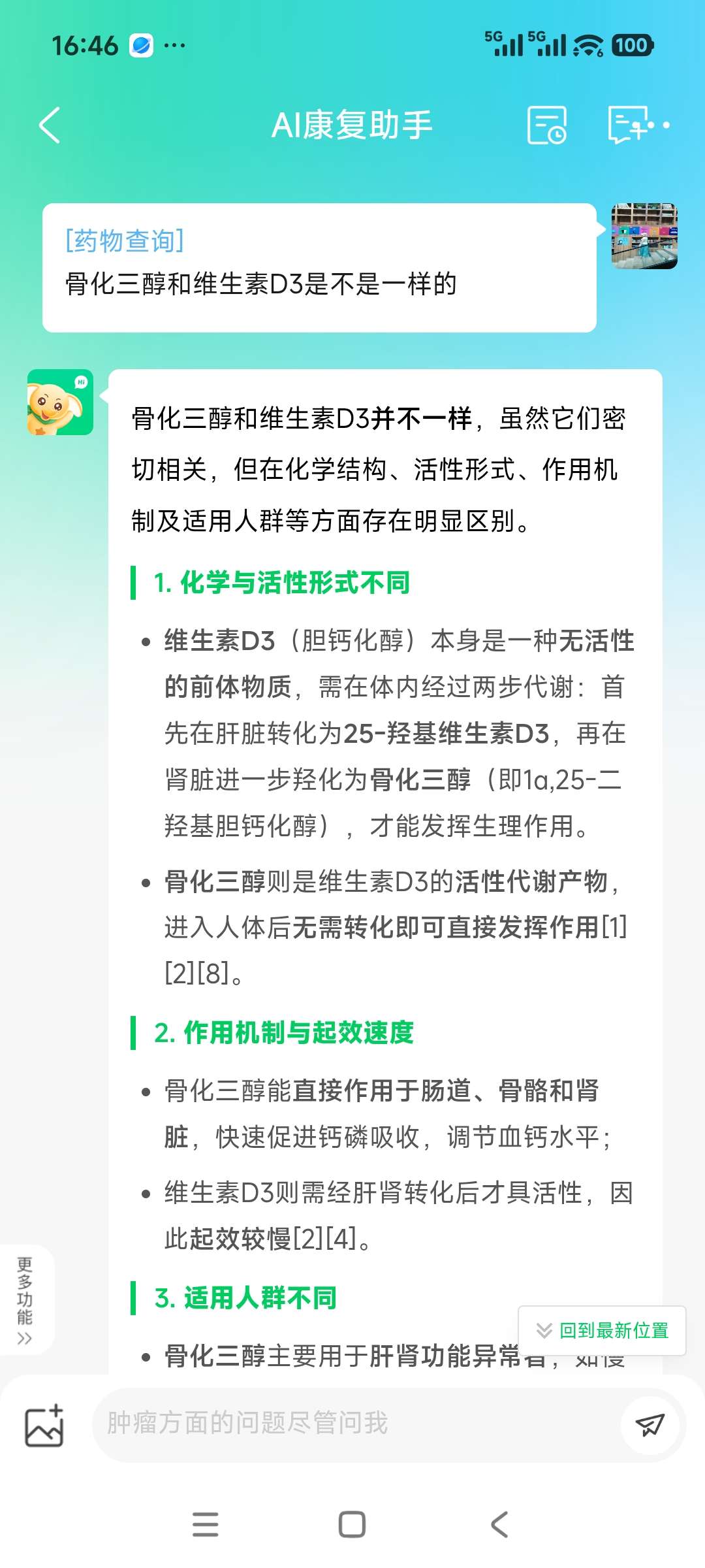点赞(0) 举报刚问了Ai,骨化三醇和d3是不一样的。亲身经历,25-羟基维生素D正常了对我们需要吃内分泌药和年纪大的,是要继续吃骨化三醇的。我之前这个指标是正常的,因为换了其它生产厂家的骨化三醇,半年掉到正常值下,现在换吃罗盖全快一年,也没能补充正常。