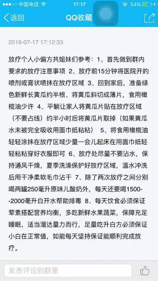 点赞(0) 举报我放疗时医生叫我穿纯棉软的衣服。加油