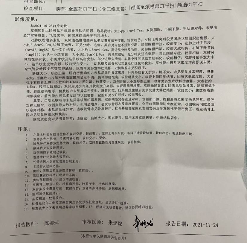 基础信息:女70岁,肺腺癌,左腋下和左锁骨淋巴结22年3月,气管镜egf