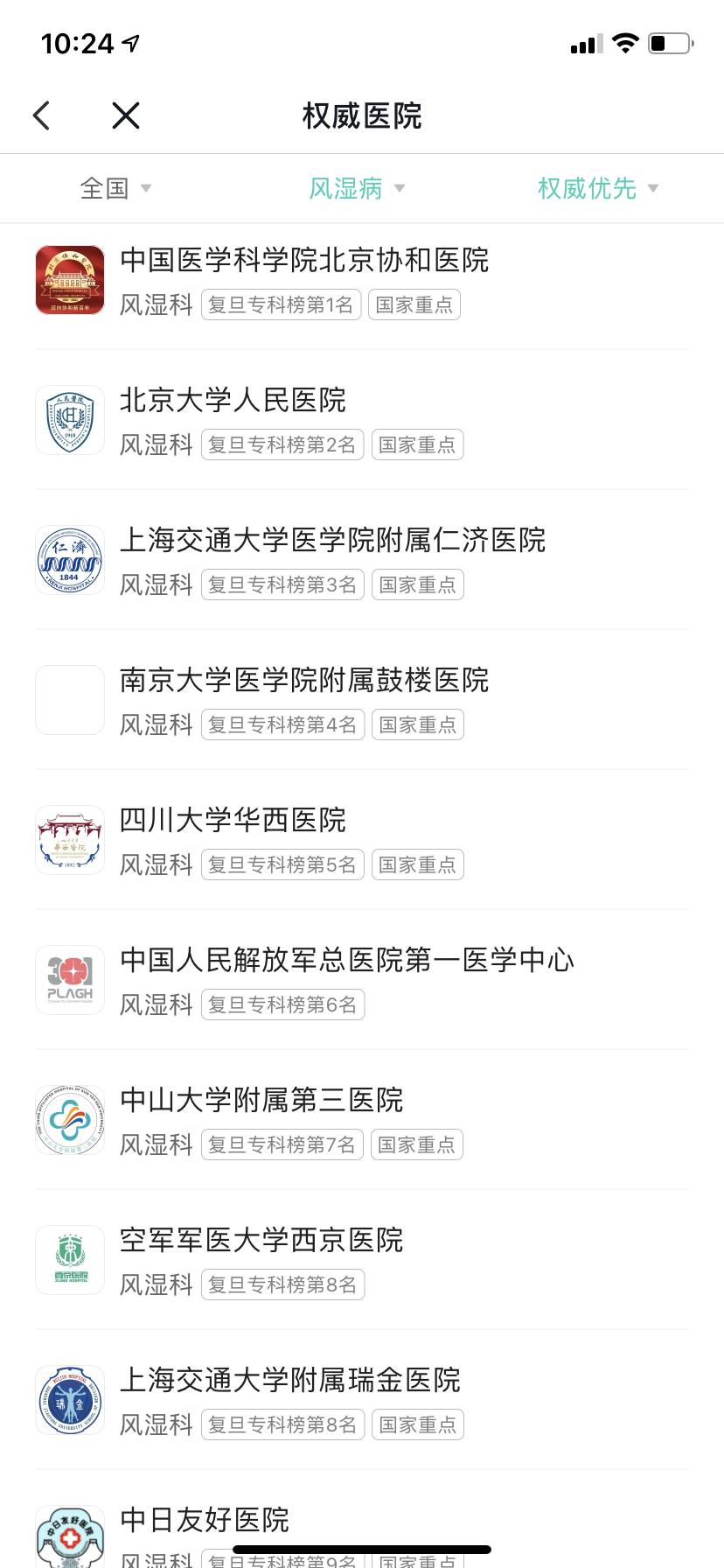 点赞(1) 举报我找到风湿免疫的全国排名,大家有条件还是要去大医院看