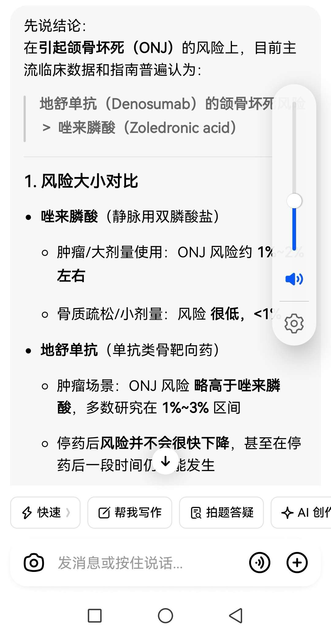 点赞(0) 举报骨针对牙齿有伤害,问问大夫能不能换成其它的,例如唑来磷酸。相对来讲地舒单抗对牙齿的副作用比唑来磷酸稍大些。