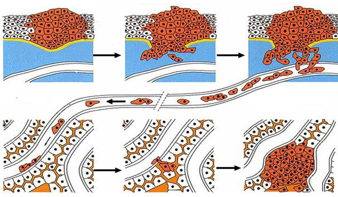 CTCs通过从肿瘤组织中脱落游走至血管,穿过血管进入血循环,克服自身及血循环中各种因素的杀伤作用,到最后定植形成新的转移灶等多个生理步骤,使得CTCs可顺利侵袭转移从而促进相关疾病的进展。