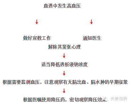 3、加强宣教,使患者能很好地配合治疗,在透析间期能做到定时测量血压,按时服用药物,同时注意休息,戒烟戒酒;
