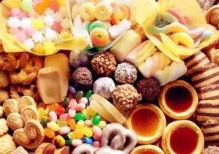 蛋糕、面包、糖果、薯片等零食给孩子吃