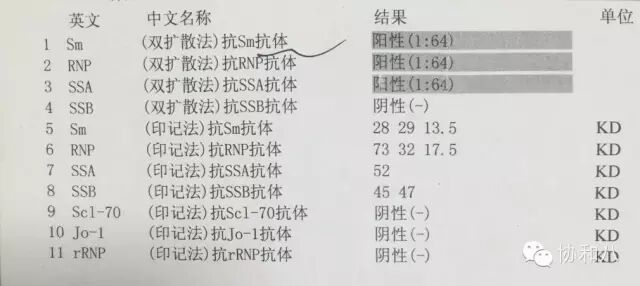 患者抗Sm( )1:64,抗SSA( )1:64,抗RNP( )1:64.