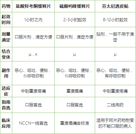 强阿片类药物止痛效果不存在差异;但副作用与价格有,这是选择品种的依据;