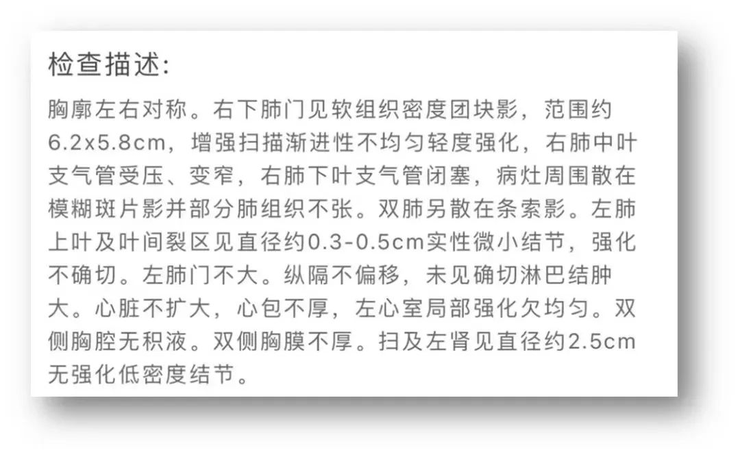比如下面病例里的这位老烟枪,已经咳嗽好几年,发现肺部肿瘤已经很大了,穿刺后确认是小细胞肺癌。