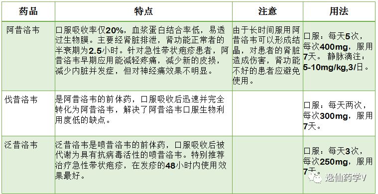 综上所述,临床上针对带状疱疹有用药指征的应尽早系统使用抗病毒药,对于神经痛根据阶梯疗法合理选用镇痛镇静药,并可根据患者的病情轻重合理加用激素类药物、营养神经药物、免疫调节剂等,可辅以外用药,若患者水疱溃烂引发感染,必要时还会使用抗生素治疗。