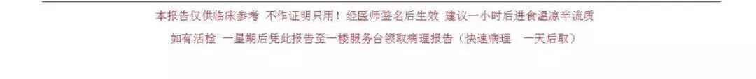 既然做了活检,那什么时候可以吃东西,什么时候拿活检报告,最下面的红字部分都交代清楚了,这个很重要。