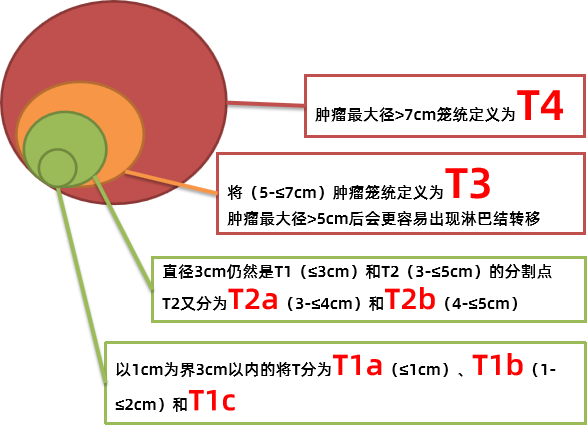T分期:肿瘤最大直径超过5cm,更容易出现淋巴转移