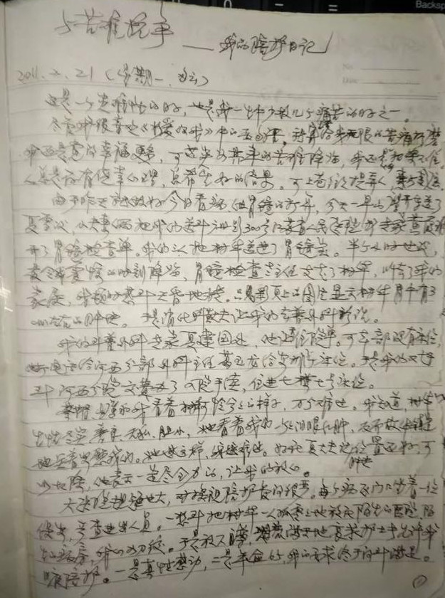 当了几十年语文教师的他,还决定写陪护日记,一能打发时间,二能留下些纪念,三能记录一些治病方案和抗病感言。