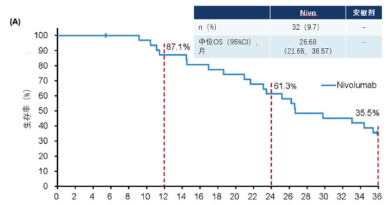 图3:纳武利尤单抗组蓝色“生存拖尾”十分亮眼