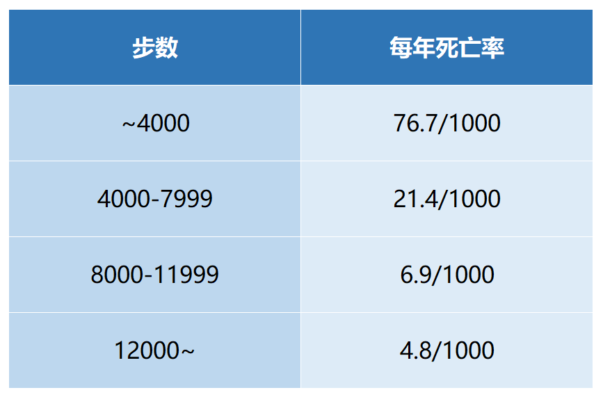 这可能是我们大多数人的生活。经常是几个月下来,才发现自己竟然没有运动过一次。最直接的表现就是,你会发现自己越来越容易生病,专注力和精力都在直线下滑。点到为止,这里不是贩卖焦虑,只是想让大家运动起来。运动,是个好东西,不仅能锻炼身体,还能改善睡眠、防止抑郁、提高免疫、防癌抗癌,预防各种疾病,抗衰老......关于运动的好处,有太多太多,这里就不一一举例论证了。运动是必须的,健康是重要的。对于缺少时间的都市人,这里有一份运动建议,简单、廉价、实用:虽然,大家都隐隐约约的感觉步行越多,对我们的健康越有利,但是到底多少步才够量,到底对健康有什么好处,还是不确定的。而在最近的一项由美国国立卫生研究院(NIH)、美国国家癌症研究所(NCI)、美国国家老龄研究所(NIA)以及疾病控制与预防中心(CDC)主导的十年大型研究准确的回答了这个问题。研究发现,每日步行步数越高,死亡风险越低,而且步行强度与此没有太大的关联。该研究在2003-2006年间,对4800名美国40岁以上的成年人代表性样本进行了长达10年的追踪。研究人员主要通过这些人佩戴的电子监测装置来记录他们的步数,通过踏频分析他们的步行强度。调查显示,在这些人群中,死亡原因主要来自心血管疾病与癌症,随着每日步数的上升,死亡风险逐步下降。其中,相比于每日步行4000步的参与者,每日步行8000步的参与者全因死亡风险降低了51%,而每日步行12000步的参与者全因死亡风险降低了65%。不过在分析这些参与者步行强度时,研究人员却发现,步行强度与全因死亡风险降低无关。意思是说,走路锻炼重在步数,而不是速度和时间,即便散步逛街买菜这种悠闲的方式,只要步数够了,也能从中获益(男士们赶快陪女友或夫人逛街去吧,不仅能交流感情,还能锻炼身体)。研究结果说明,我们没有必要热衷于高强度的锻炼,即使每天简单的散步也能显著降低我们的全因死亡风险。