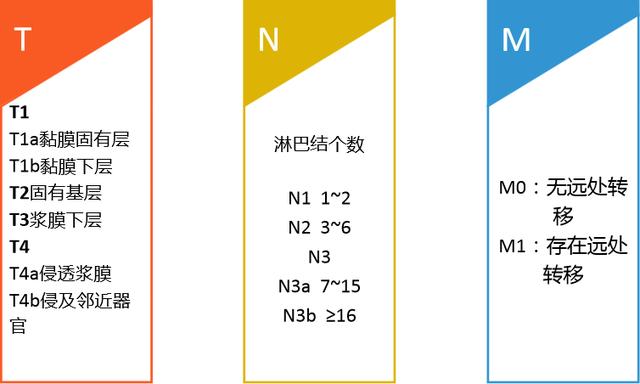 胃癌分期主要考虑三个基本因素:原发肿瘤侵犯胃壁的深度、是否出现淋巴结转移、癌症是否扩散至其他部位。