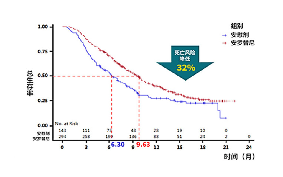 从上图安罗替尼的临床研究(ALTER0303研究)可以看出,安罗替尼组患者的总生存期较对照组延长了3.33个月。并且,安罗替尼显著延长患者的无进展生存期3.97个月[12]。2019年9月,安罗替尼同样获批用于小细胞肺癌的治疗,为小细胞肺癌患者带来新的治疗选择。这意味着在安罗替尼的作用下,晚期肺癌的病情能够得到更好的控制。