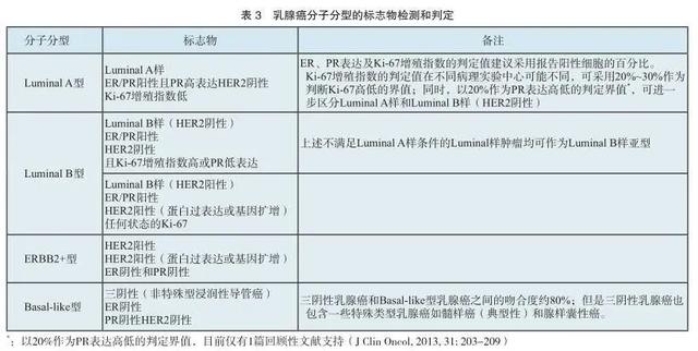 同时,Ki67还可以作为腔面A和腔面B型的区分指标,但是目前Ki67没有明确高低值的判断标准,大多数文献仍以14%为界, 2015年St. Gallen共识中,多数专家将20%~29%这一区间作为临界值来区分腔面A和腔面B型乳腺癌。
