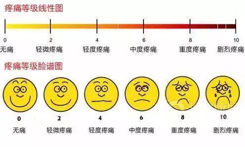 看上面的表情所对应的疼痛程度,是不是更加清晰了呢。