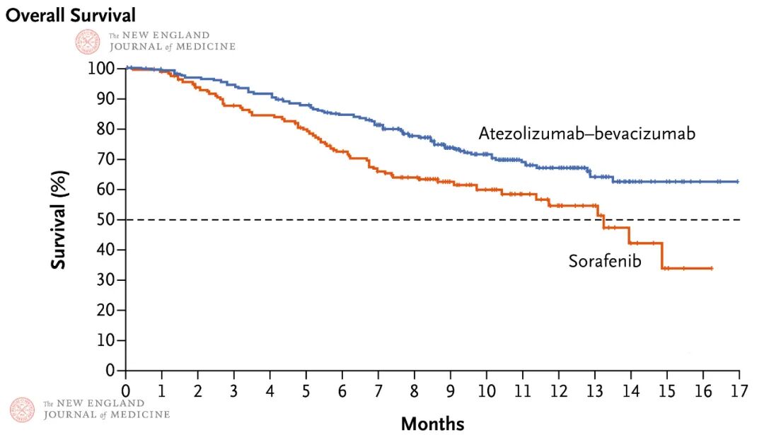 5月14日,《新英格兰医学杂志》(NEJM)发表了一项肝细胞癌的3期临床试验结果[1]。这个研究有关全世界百万人的性命,因为它将改变目前肝细胞癌的一线治疗标准。简言之,这个临床研究的结果表明,与现有的最好药物相比,新疗法能将患者死亡风险降低42%。