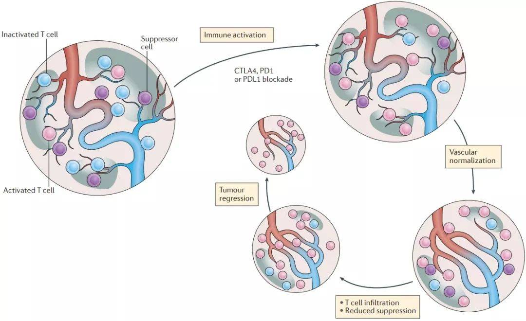 而抗血管生成药物和PD-1/L1抑制剂联合使用,能从各个不同角度擦出火花的增效机制,奇点糕也不止一次地提到过了,毕竟这是免疫联合治疗目前成果最显著的方向。