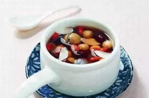 1、将枸杞20粒、红枣5粒、红豆20粒、红皮花生米20粒、红糖适量放入陶罐,放适当的水后加盖,然后把陶罐放到有水的锅里蒸煮而20分钟而成。