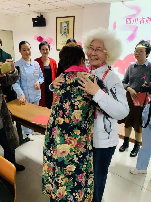 在拨打的热线电话中,家敏老师分享了一位25岁的乳腺癌患者的故事,年纪轻轻身患癌症,当时的未婚夫又与她分手,雪上加霜,她绝望地想要放弃治疗。电话那头的她十分绝望,家敏老师听到她的讲述后反问道:“这个人在你生病之后就离开了,那么他还可爱吗?”电话结束,两人约好了第二天见面,碰面后一老一小亲切拥抱、畅谈,老人的鼓励、劝慰,小病友的反反复复,终于打消了她极端的念头,同意进行手术。300多天过去了,后来的她,不仅身体恢复得非常好,还顺利回归社会,升职加薪。问到如今是否还与小病友保持联系,家敏老师说道:“一般面对青年和中年的女性,等到她们完成治疗,回归社会后,我不会主动联系她们,我希望她们不要老是记着自己曾经是一位乳腺癌患者。”从1994年起至今26年以来,家敏老师已经连线数万名来自全国各地的乳腺癌患者,即使在疫情居家期间,她依然接听了近2000个的求助电话。一根电话线,就像一束光照亮她们的抗癌生活,增加与癌魔对抗的信心。“尽管电话可以和天南地北的姐妹们沟通,但总觉得十分遥远。我们无法从肢体上去抚慰她,去抱一抱她,为她擦拭眼泪。”家敏老师热泪盈眶地说道。为了解决这一问题,张家敏和几位病友姐妹商量,成立一支志愿者服务队,专门为乳腺癌住院治疗患者服务。2012年,一支短小精悍的名为“粉红丝带志愿服务队”的公益团队成立了,队伍的宗旨是关爱乳房,珍惜健康。