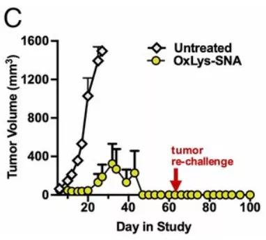 为了评估这种氧化裂解物球形疫苗是否能诱导小鼠的免疫记忆,研究人员在第60天时再次向小鼠体内注入肿瘤细胞,发现所有动物都经受住了挑战,仍保持无肿瘤状态。这表明,球形疫苗不仅可以根除已发生的肿瘤,还可以预防新的肿瘤形成。
